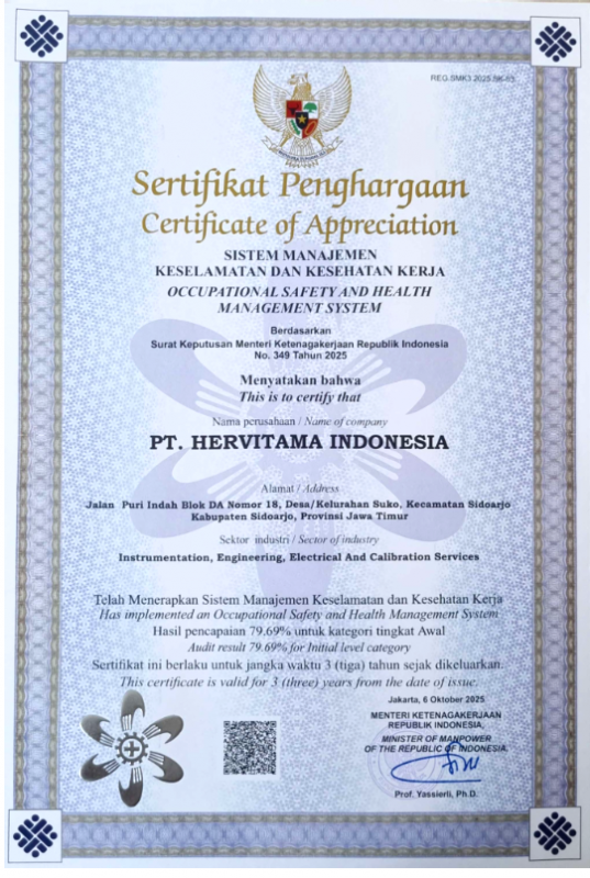 PT. Hervitama Indonesia is a trusted company engaged in electrical, instrumentation, engineering, and calibration services, established in 2006 in Sidoarjo, East Java. Supported by skilled professionals and strong technical competence, we continuously deliver reliable solutions that meet industrial needs with precision and integrity.